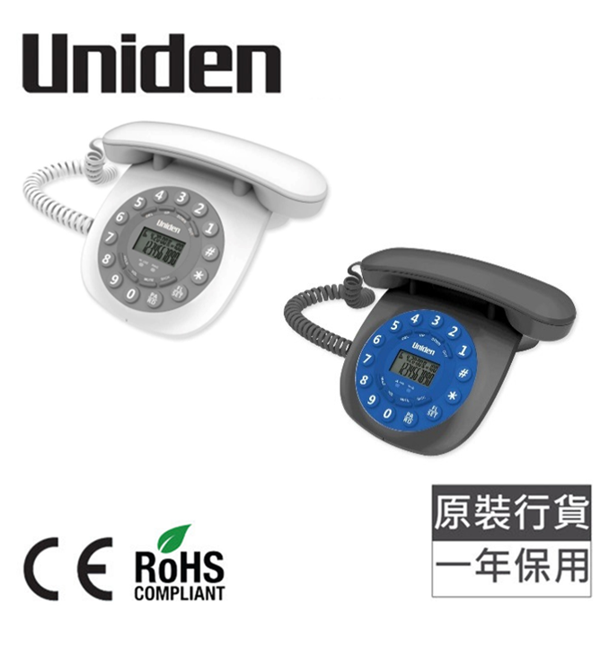 日本品牌 Uniden 有線電話-復古設計-來電顯示 CE6601WH 白 CE6601BL 藍-香港總代理