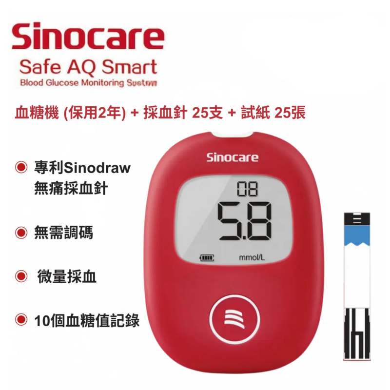 Sinocare - Safe AQ Smart 血糖機套裝 (主機+25針+25試紙)