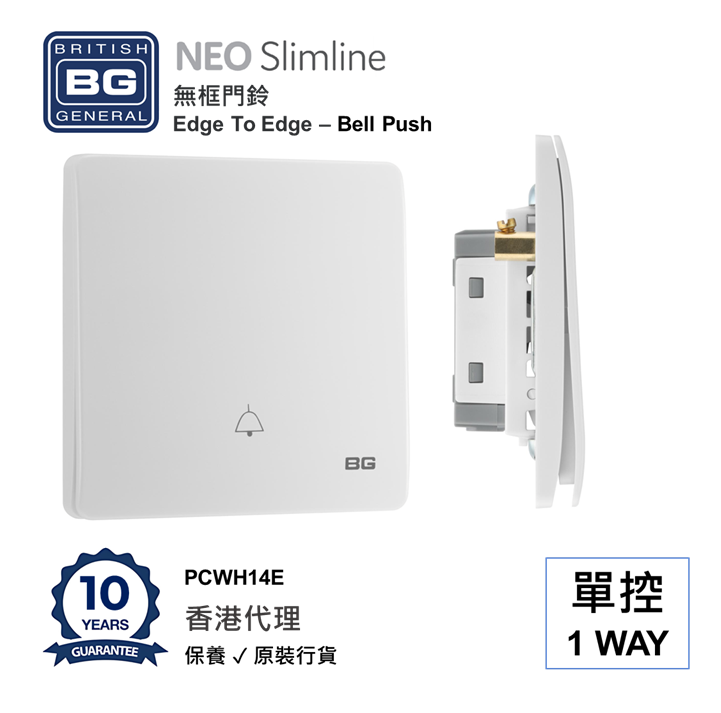 British General - BG Neo Slimline系列-無框門鈴 Edge To Edge 10A/10AX 單控1位 PCWH14E 白-香港代理
