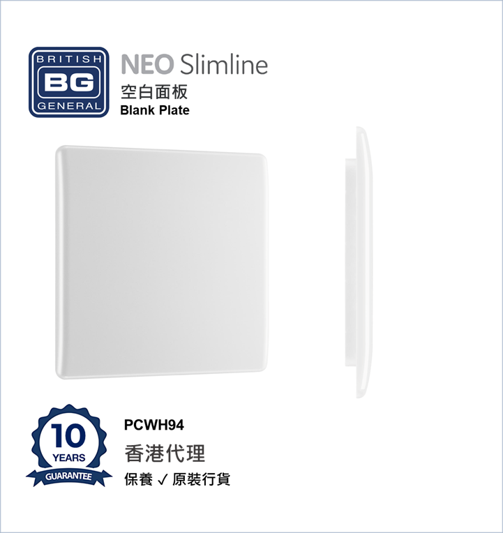 BRITISH GENERAL - BG Neo Slimline 空白面板 Blank Plate PCWH94 白-香港代理