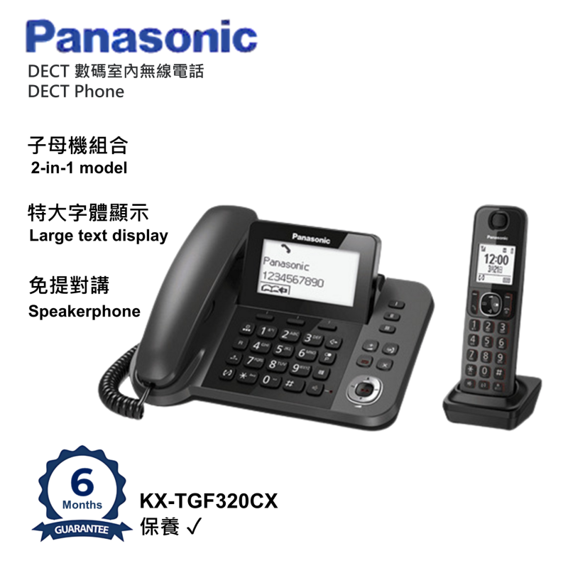 樂聲牌 - DECT 數碼室內無線電話 - 停電可用 - 免提對講 - 特大字體顯示 KX-TGF320CX 黑色