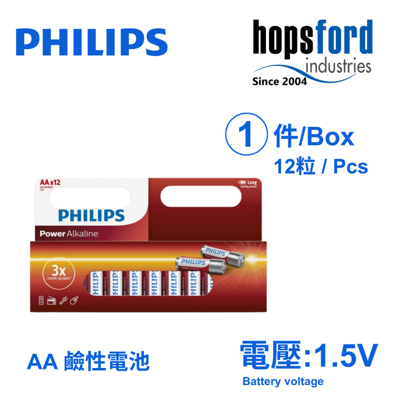 Philips 飛利浦 [1件裝 = 12粒] Power Alkaline 鹼性電池 AA LR6P12B/97